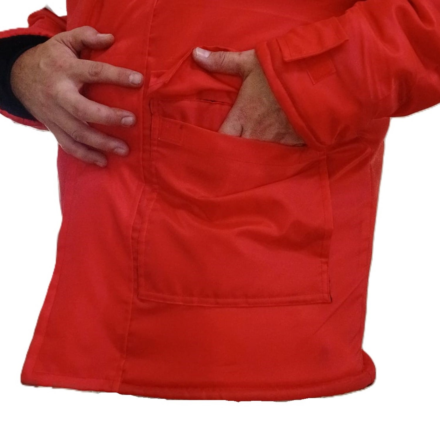 - Puños trampa viento con morley y ajuste externo de velcro, tapa cierre con velcro.