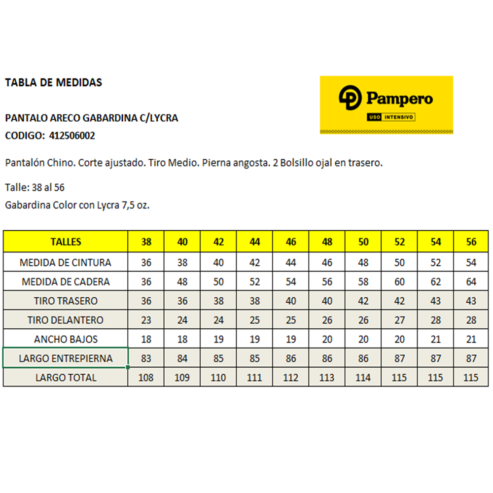 PANTALON CANDELARIA GABARDINA C/LYCRAMUJER – PAMPERO
