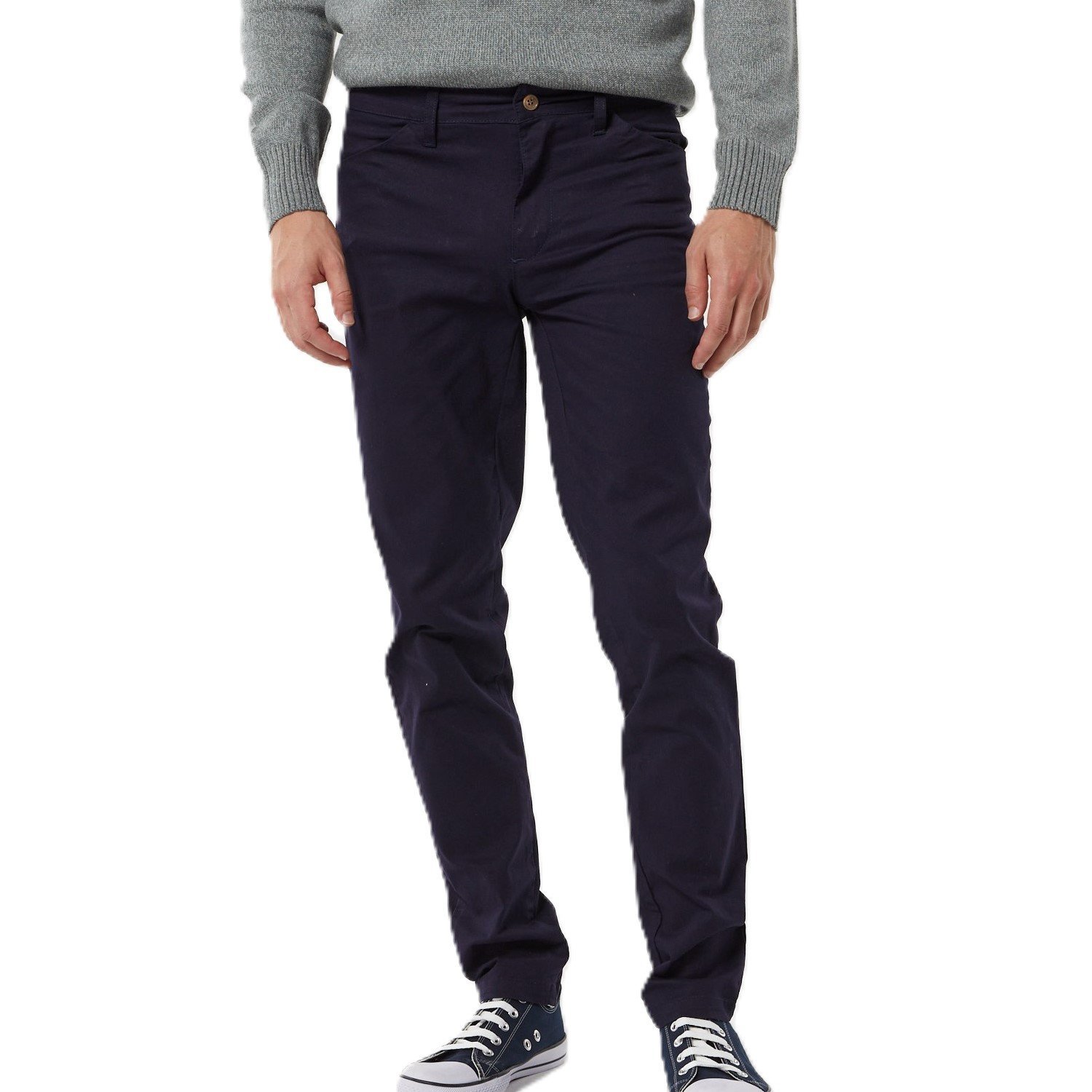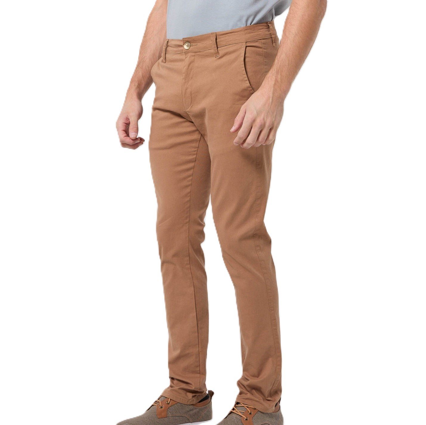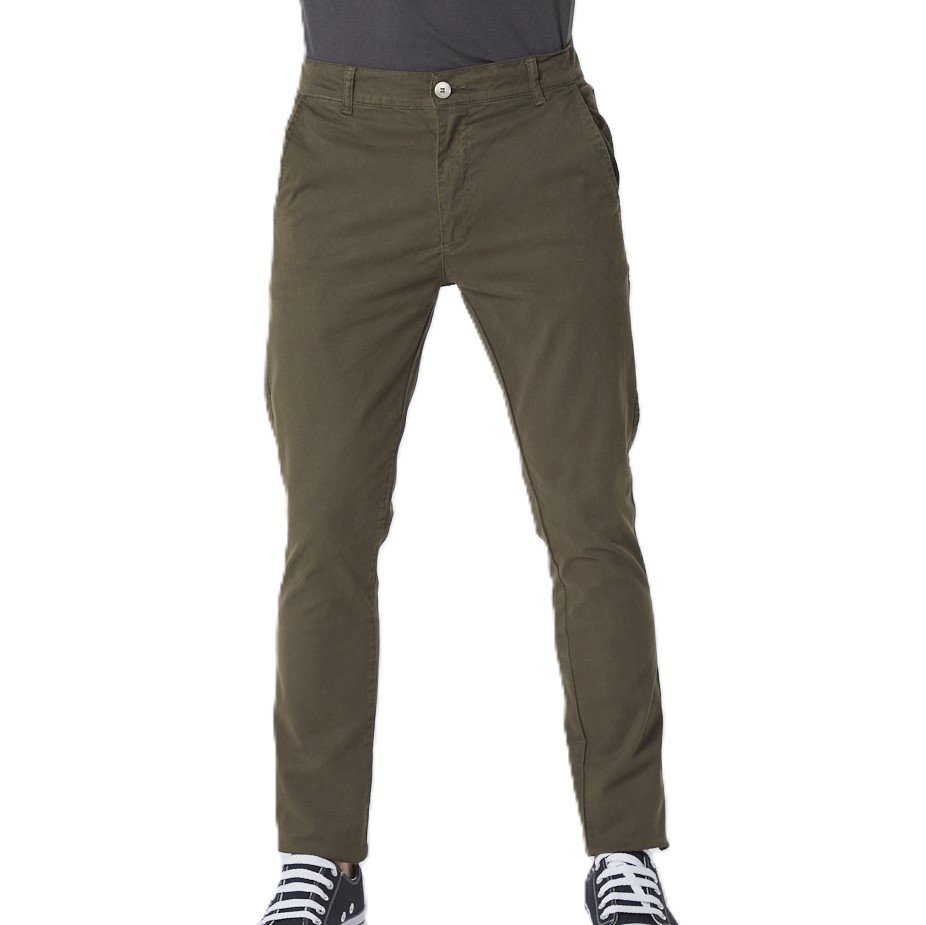 - Pantalón chino confeccionado en gabardina apta con confort, teñido en prenda.