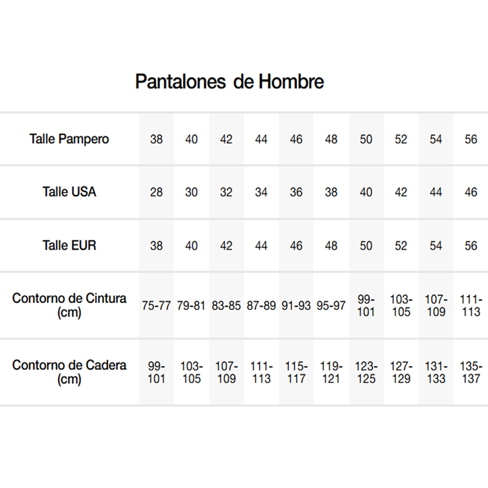 TALLES DEL 38 AL 56