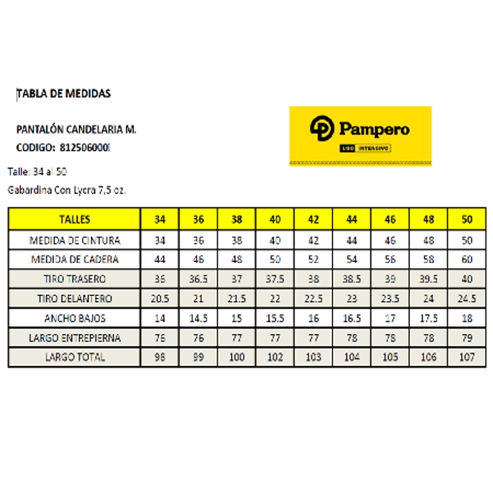 PANTALON CANDELARIA GABARDINA C/LYCRAMUJER – PAMPERO