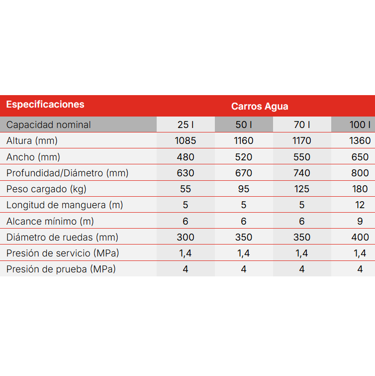 Extintor sobre ruedas a base de agua bajo presión