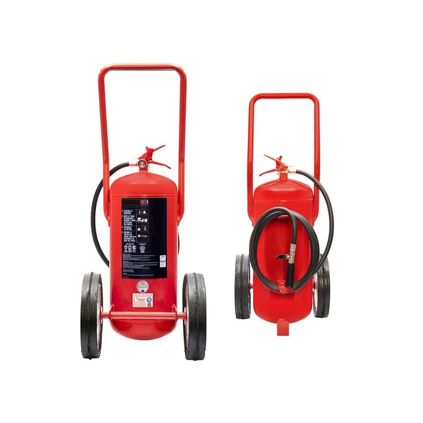 Extintor sobre ruedas a base de polvo químico seco BC bajo presión